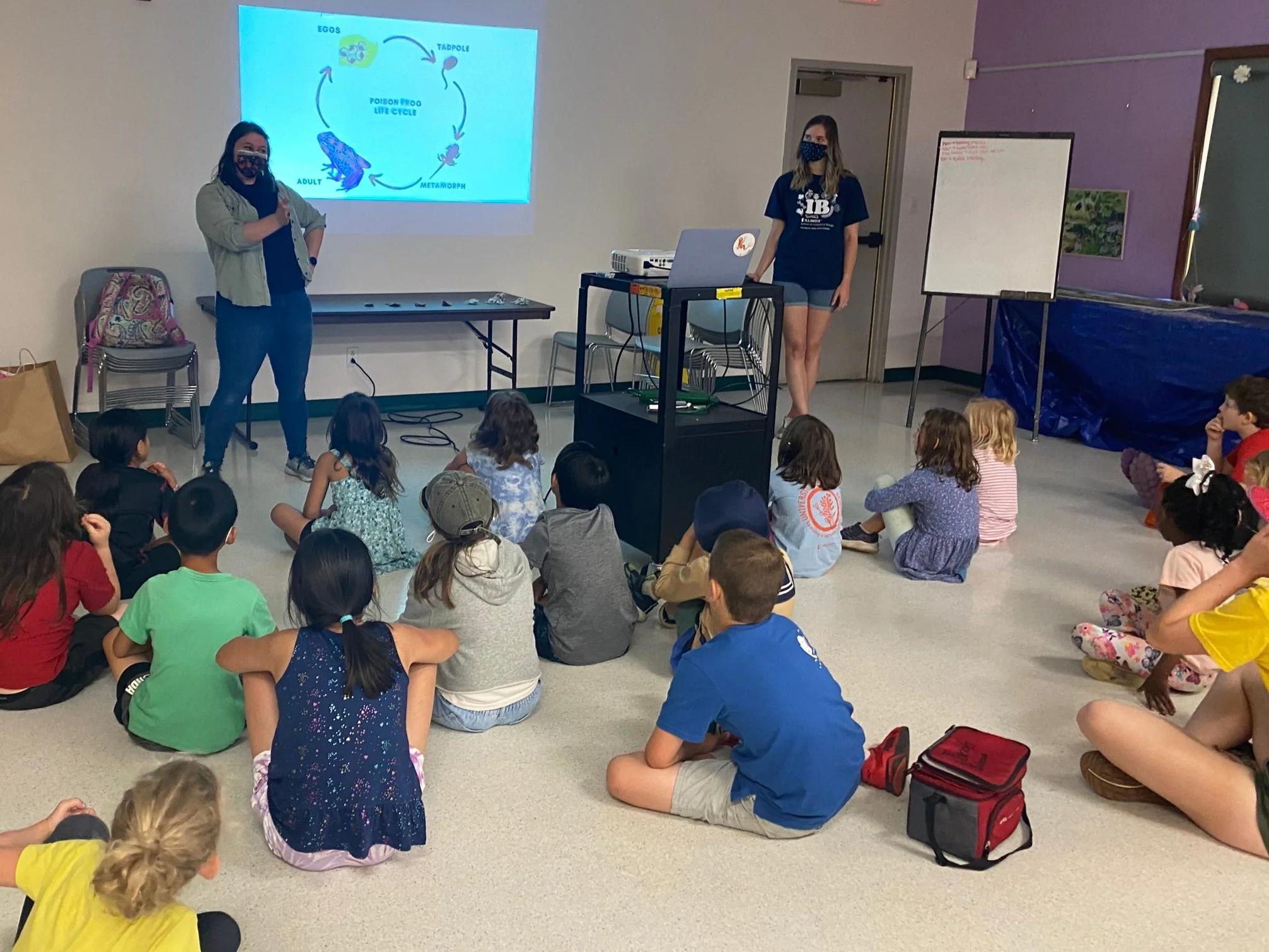 We regularly visit local schools, libraries, summer camps, and community events. We typically bring information about our research and the frogs, hands-on activities for all ages, and (of course) the frogs! We love to show off our cool critters to audiences of all ages and backgrounds. Check out previous events below, come see us at an upcoming event, and get in touch if you’re interested in coordinating a froggy field trip.